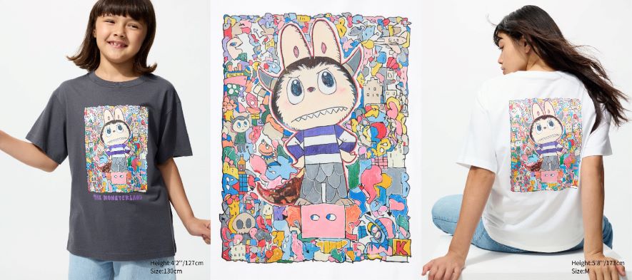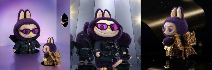 由Pop Mart推出的Labubu玩偶在時尚圈引發熱潮,曾與多個品牌合作 : 像是與Pronounce的跨界合作,將Labubu打造成時尚系列角色亮相米蘭男裝週,配戴品牌標誌性的Infinity Rope設計與Gourd Húlu包,以及翅膀造型服裝與紫色墨鏡,完美融合街頭與高端時裝感;還與UNIQLO合作推出UT系列印花T恤、大學T與童裝,用Labubu插畫注入童趣與潮感。