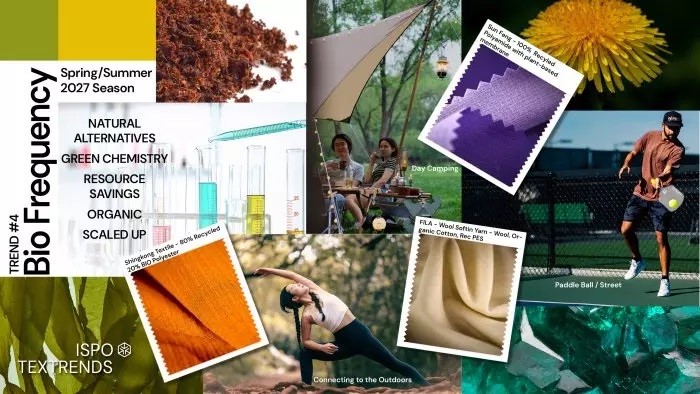 2027春夏ISPO Textrends再次與紡織趨勢顧問Louisa Smith合作,提前為業者預測從顏色到材質的市場趨勢。以下為色彩與材質分析:
