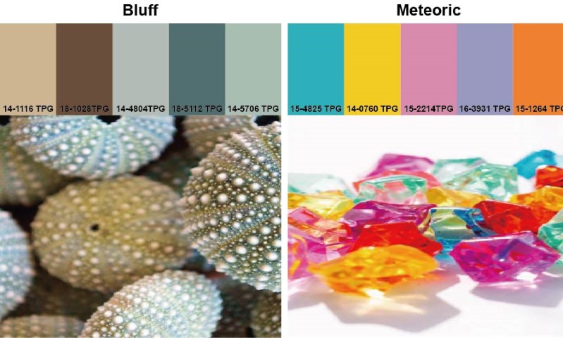這種色調鮮明而合成感強,散發著甜美的氣息。透過色彩變化,可以調節色調的強弱,例如將黑色原染紗線與原染的亮色紗線搭配,營造出一種頹廢的質感,與核心色系中更濃鬱的色調相得益彰,是服裝和鞋履裝飾及配飾的理想之選。