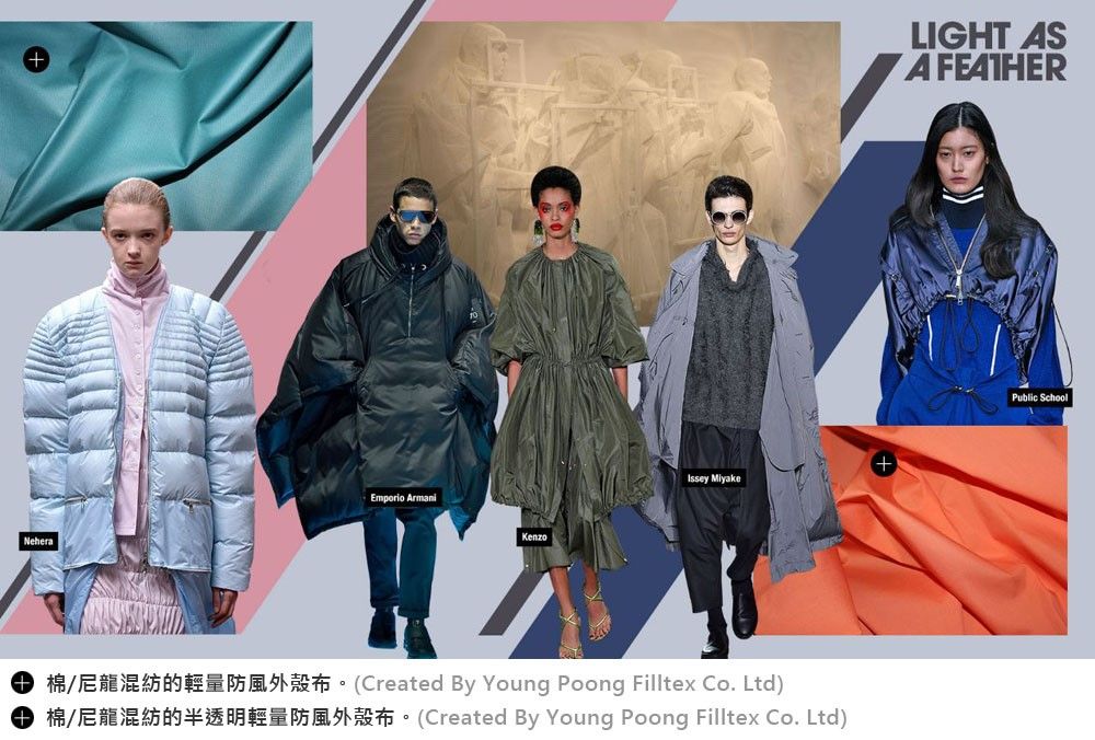 手感乾燥、輕量如紙般的棉布,可用在前衛的男女裝運動服式樣上。